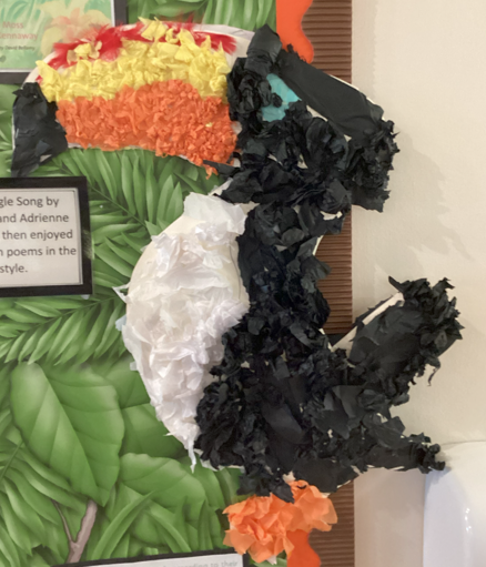 As part of Year 4's 'Stunning Start' into their 'Rainforest Rescue' topic, they read the book 'Actual Size' and created 5 different rainforest animals for the classroom! We used a variety of media and techniques to do this.