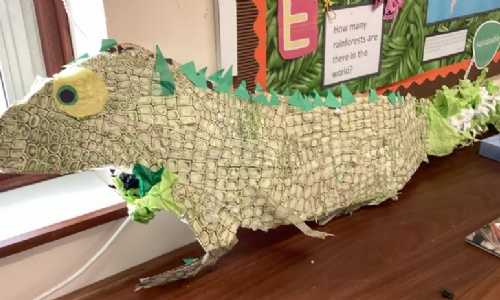 As part of Year 4's 'Stunning Start' into their 'Rainforest Rescue' topic, they read the book 'Actual Size' and created 5 different rainforest animals for the classroom! We used a variety of media and techniques to do this.